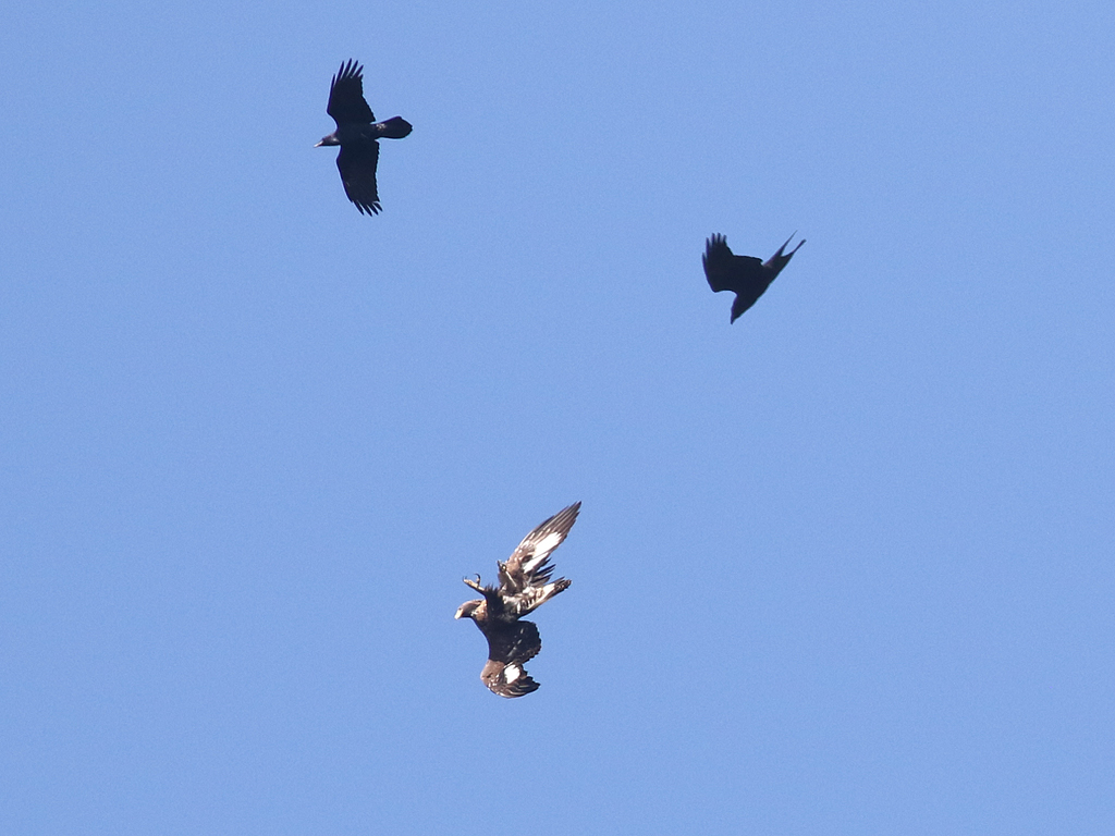 immature harcelé par 2 grands corbeaux11/20