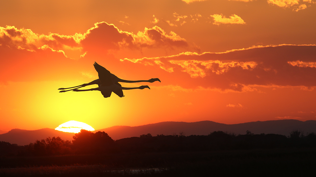 vol de flamants roses