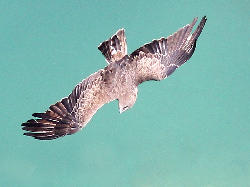 S05 (la Sauce) mues : rémiges primaires clairsemées dans le virage arrière de l’aile de chaque côté, main plus "transparente" (de loin, surtout fente visible en bout à droite) |