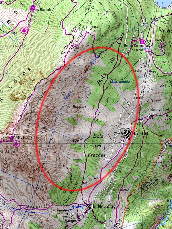 versant ESE de Crève-Tête, du Villaret au Novallay