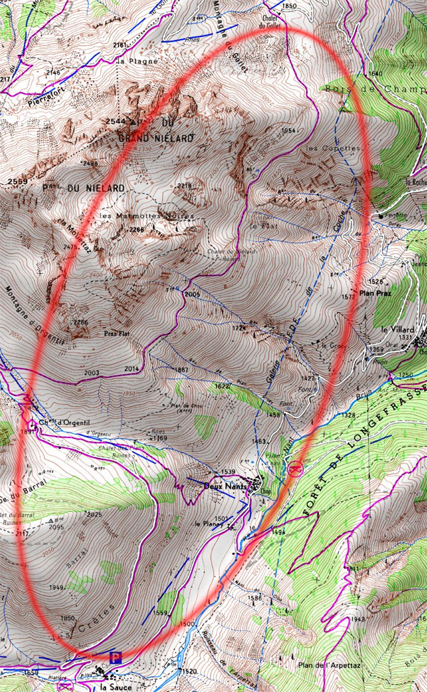 versants SE du Grand Niélard et du Cheval Noir, du col du Gollet à La Sauce