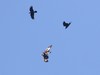 Aquila chrysaetosAigle royal juvénile agressé par 2 grands corbeaux