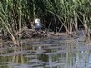 Himantopus himantopusEchasse blanche femelle, avec poussin