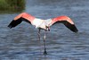 Phoenicopterus roseusFlamant rose couple en vol, soleil