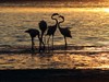 Phoenicopterus roseusFlamant rose couple au coucher du soleil